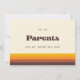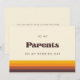 Um cartão de presente simples e minimalista para escrever uma mensagem pessoal e sincera para seus pais no dia do seu casamento. Escolha um tema retrô e vintage para a sua papelaria de casamento. Clássico, mas em moda, este design de meio século de ranhura vai se adequar a todas as suas necessidades. Facilmente personalizável, você altera a cor do texto ou o plano de fundo conforme desejar.