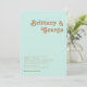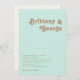 Esta praia retrô | o convite para o casamento de aqua é perfeito para o seu casamento de vintage, colorido, de boho tropical. Sua única fonte boêmica do século do médio dá a essa design uma víbora hippie minimalista clássica. Suponha que você esteja procurando por uma design que apresente cores brilhantes e rústicas do oceano costeiro para o seu casamento criativo de praia de destino dos 70 anos. Nesse caso, este produto, e sua coleção de casamento coordenada, são o que você está procurando. Sinta-se livre para mudar a cor adicionar seu próprio trabalho de arte, gráficos ou fotos. Se tiver alguma dúvida sobre a design deste produto, por favor sinta-se à vontade para nos contactar!