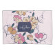 Add a touch of retro charm to your bedroom with this beautiful floral pillowcase. The design features a delightful pattern of pink, cream, and gold flowers with deep navy accents, all set against a soft pink background. A navy blue banner with a delicate gold outline is centrally placed, allowing for the addition of a name in an elegant script font. This pillowcase is perfect for adding a personalized and stylish touch to any sleeping space, evoking a sense of vintage elegance and natural beauty. It's a wonderful way to express your individual style and bring a bit of the garden indoors.