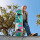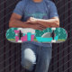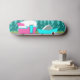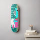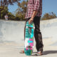 Este Retro Camper / Trailer and Car Skateboard apresenta um desenho de desenho moderno e minimalista de meio século que o deixará pronto para levar para a estrada aberta. Uma homenagem aos anos 50, este design apresenta um carro de turquesa vintage com o topo branco, puxando um trailer de viagem kitschy para seu destino final. O RV retrô perfeitamente restaurado tem uma metade rosa-quente inferior, metade superior branca, e um raio turquesa que separa os dois. A porta do lado da campista também é turquesa. O sotaque final é a asa rosa quente que se projeta a partir do fundo desta casa sobre rodas. Os campistas felizes estão dirigindo por uma estrada de cinza. A estrada está rodeada de relva verde e exuberante. Ao fundo, podemos ver as teais silhuetas de uma verdadeira floresta de árvores de cedro, contra um céu aqua com nuvens azuis fofas e leves. Esta design é perfeita para todos os hippies reformados, hipsteres que fogem, ou qualquer um que queira reviver algumas memórias de infância excelente. A melhor parte é que ninguém está perguntando, "Nós já estamos lá?"