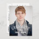 Cartão postal de convite para Festas de formatura modernas para formandos machos com um design simples com uma camada de texto branco para tipografia retrô. Elke Clarke © para MonogramaGallery. Personalize com suas informações de formando selecionando "personalizar" ou use os prompts do menu modelo. Troque a foto de exemplo por sua.