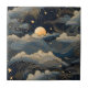 Um céu azul à noite como fundo, decorado com estrelas e uma lua. Estilo retrorreflector