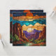 Retro desert scene Sedona mountains stainglass art