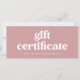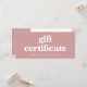 Esta moda, poho poeirento, rosa cor-de-rosa, certidão de presente para pequenas empresas apresenta a tipografia de na moda retro. Há um lugar para o seu logo atrás.