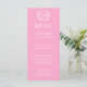 Elevem sua celebração de casamento com esses cartões de cardápio boêmicos e elegantes e cor-de-rosa. Adorados com flores brancas e apresentando uma coroa floral clássica com noiva e monograma nobre no topo, esses cartões adicionam um toque de elegância eterno ao seu dia especial. Explore os cartões de menu perfeitos para uma celebração memorável.