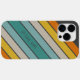 Um arco-íris retrô com 70 anos inspirou cores e um padrão mínimo. As cores do chalé, laranja e dourado podem ser alteradas. As grandes faixas que correm na diagonal fazem dela um olhar ousado, mas mínimo, para o seu cobrir.