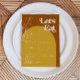 Este menu de casamento apresenta um fundo cor de laranja queimado, arco colorido de mostarda, florais infantis e uma fonte temática divertida dos anos 70. Este menu de janto é perfeito para um casamento, chá de fraldas ou qualquer outro evento especial. Todas as cores são editáveis, basta clicar no botão azul 'editar usando a ferramenta design' para personalizar as cores que correspondem ao seu evento. Par com qualquer coisa na coleção das FARRAH para um olhar coeso.