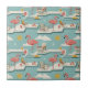 Ceramic Tile - Vintage-inspired poolside scene with pink flamingos, lounge chairs, cocktails, and sunny vibes in a retro summer aesthetic. Ideal for beach lovers, vacation fans, and those who enjoy fun, nostalgic designs.