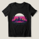 Step into a nostalgic future with this bold retro vaporwave cityscape design, featuring a glowing neon skyline set against a vibrant sunset horizon. Inspired by 80s synthwave aesthetics and cyberpunk futurism, this artwork blends geometric grid lines, sci-fi architecture, and dreamy cosmic elements to create a striking visual statement.