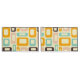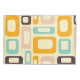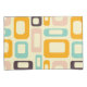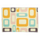 Retro geometric pattern with overlapping rectangles and ovals in orange, teal, pink, and brown on a light beige background, creating a playful, vibrant mood.