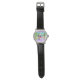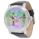 Mele Kalikimaka! Este Retro Hawaiian Christmas Watch apresenta um desenho animado minimalista de um casal atraente fazendo uma viagem de férias de uma vida inteira! A cena moderna do meio século está num aeroporto tropical. O Sr. e a Sra. Tourist estão se posando em frente ao chão para paredes de vidro no teto. Afinal, eles querem documentar cada momento de suas férias para o paraíso. O Sr. Tourist está vestido de terno preto, camisa azul clara, gravata vermelha e fedora negra. Ele está segurando uma mala laranja. O braço dele está em volta de sua linda noiva. Ela está vestindo um vestido rosa quente. Uma bolsa azul brilhante é colocada sobre um braço. Um chapéu de Papai Noel está agarrando sua cabeça loira. Não faria viagem por ar e não seria o seu melhor! Ambos estão vestindo flores coloridas em volta de seus pescoços. Ao lado deles, vemos uma espantosa, ouro, moça de fôlego esfolado com cabelo preto a correr. A Srta. Hula está vestindo uma saia tradicional de grama. Mas o topo da sua haste tem uma reviravolta festiva. O topo da biquíni dela é vermelho com uma forma branca. Coma seu coração, Sra. Claus! Em vez de uma flor, ela está vestindo um sorvete de saca em seu cabelo. Em um braço, ela tem um lei Havaiano extra pronto para oferecer à próxima pessoa para sair do avião. Não pode sentir o cheiro das orquídeas agora? No lado oposto do casal, há uma árvore de Natal que recebeu uma transformação insular. O cedro feliz é esvaiado com conchas pastéis e estrelas-do-mar. Do lado oposto do vidro, podemos ver o luxo, jumbo jetliner que levou o casal para o destino de férias. Na pista, a aeromoça do estilo 1960 está a fazer do caminho para o edifício. Ela está vestindo uma forma, uniforme azul e um chapéu azul de caixa de correio. Yowza! Essa loira linda pode me oferecer café, chá ou leite a qualquer momento! O céu é uma sombra de aqua que faz você querer alcançar o óleo do bronzeado do sol! Podemos ver as silhuetas verdes de palmeiras e a silhueta azul escura de um avião voando entre as nuvens azuis e fofinhas. Espero que aqueles pobres otários naquele avião não estejam a caminho de volta para a moda diária! Aloha!