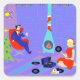Estes "Retro Home" para os "Holidays Stickers" parecem uma cena de um especial de Natal de televisão de 1960. A design minimalista apresenta um casal de desenho animado atraente na sala de estar de uma casa moderna de meio século. A sala apresenta, de forma destacada, uma parede de pedra roxa e azul e um tapete roxo e azul de striped correspondente. Contra a parede, há uma lareira em forma de cone de turquesa com um fogo rajado. Duas meias de Natal, vermelhas e brancas, foram penduradas com cuidado pela chaminé mod. As faixas de luzes coloridas de Natal estão penduradas no topo da parede. No canto, o homem suave da casa está descansando em uma cadeira de ovo vermelha. Ele está vestindo um terno azul com uma gravata vermelha. Há um punho de Holly preso à sua lapela. Em uma mão, ele está segurando um copo de martini. Não admira que ele seja tão cheio do espírito natalino! Ao lado dele, há uma árvore de Natal verde, pequena, com ornamentos de chá e uma estrela amarela. Perto do teto, há uma instalação de luz amarela Sputnik. Uma loira com uma figura de ampulheta está sentada no tapete. Ela está vestindo um vestido festivo, vermelho e chapéu de Papai Noel. Ao lado dela, no chão, há um toca-discos portáteis azul e preto. Vários álbuns de Natal estão espalhados perto do lindo DJ. Continue cantando junto. Você sabe que quer!