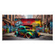 Retro Hot Rod Grafite Urban Landscape Art Impressão apresenta urbano, grafite, colorido, tinta spray, varas quentes, carros, automóveis, carros clássicos e carros de corrida.