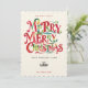 Esta Carta Vermelhos Vermelhos Vermelhos Merry Christmas Watercolor apresenta um design nostálgico com tipografia de inspiração vintage em tons vermelhos e verdes festivos. O ousado e brincalhão "Feliz Natal" evoca o charme dos cartões de natal do século médio. A aquarela suave em vermelho e verde adiciona um toque confortável e artístico, criando uma vibração quente e caprichosa. A estética retrorreflectora combinada com texto personalizável e a opção de incluir o logotipo da sua empresa ou foto pessoal faz disso o cartão de saudação perfeito para espalhar alegria de feriado em qualquer reunião festiva ou celebração.