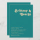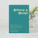 Este retrato moderno | o convite para o casamento teal é perfeito para o seu simples casamento de vintage, colorida, de boho tropical no verão. Sua única fonte boêmica do século do médio dá a essa design uma víbora hippie minimalista clássica. Se você está procurando por uma design que apresente cores brilhantes e ousadas para o seu casamento criativo na praia dos 70, então esse produto, e sua coleção de casamento coordenada, é exatamente o que você está procurando. Sinta-se livre para mudar a cor adicionar seu próprio trabalho de arte, gráficos ou fotos. Se tiver alguma dúvida sobre a design deste produto, por favor sinta-se à vontade para nos contactar!