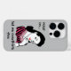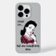 "Espera...deixe-me pensar demais" é o texto ao lado de uma imagem retrô de uma mulher vestida de rosa nesta capa de telefone engraçada.