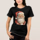 T-shirt com uma bela ilustração do estilo retrô. Papai Noel com uma barba branca e arbusta vestindo seu terno vermelho tradicional.