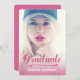 Retrô em Negrito Rosa 2| Convite à Festa de formatura para 2014. Design por Elke Clarke © para MonogramGallery. Uma sobreposição de texto de fonte de script de safra cor-de-rosa com a palavra "Formando" é impressa na parte frontal com um efeito fotográfico rosa. Adicione seu texto de convite na parte traseira do cartão com uma fonte branca moderna em uma cor de fundo rosa. Outras cores disponíveis.
