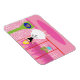 Este Retro In the Pink Flexible Magnet parece uma cena de uma comédia romântica de 1960. A design minimalista mostra uma mulher sofisticada em seu apartamento ultra-gordinho e ultra-rosa, com cobertura. A sala apresenta uma parede de tijolos cor-de-rosa com linhas de caldas brancas. Em frente à parede, há uma lareira de cone verde com um fogo rajado. Através de portas de vidro deslizantes vemos uma sacada cor-de-rosa com uma grade branca. Uma planta exuberante e tropical está num vaso de água. A vista da varanda é de uma silhueta de um horizonte de uma cidade grande. Claro, a silhueta está em tons de rosa! Uma lua amarela e crescente está no céu. Ficando em um tapete rosa quente, o shag tapeado no apartamento é a principal dama deste design. Em flagrante contraste com o mundo rosado que ela criou, a bela loira está vestindo uma forma de topo, preto, colado a colher, com uma saia branca longa, esfolada, com embelezamentos de penas pretas. Com esta design, vocês também podem olhar para o mundo através de óculos rosa!