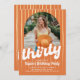 Fazer 30 anos nunca parecia tão divertido! Este vibrante convite para aniversário de 30 anos apresenta faixas laranja em negrito, texto de script branco e espaço para uma foto personalizada. É a combinação perfeita de encanto retrô e estilo moderno para lançar sua celebração de marco com talento. Totalmente personalizável para corresponder à sua vibração partidária!
