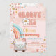 Retro Rainbow Groovy Um Convite para primeiro aniv