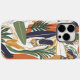 A playful illustration inspired by mid-century style. This wallpaper features stylized surfers in floral swimsuits, longboards in burnt orange, cream, and deep navy, and lush green tropical leaves arranged in bold, curved shapes. The warm, sun-washed color palette conveys a sense of relaxation and artistry.