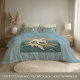 This reversible dusty-coastal blue pillowcase is the perfect way to bring the beach into your bedroom decor. This retro-inspired surf art features a too-cool bulldog who rides an endless wave in front of the setting golden sun. Designed with old-school California energy, the distressed look gives it an authentic feel, like it was pulled straight from a vintage surf shop. On the reverse is a repeating classic surfboard pattern inspired by coastal surf culture with sun-bleached boards, vintage blues, weathered yellows, and faded reds you’d see stacked outside a surf shop or leaning against a fence after a long session. Change the look depending on your mood! | Matching duvet cover available in my store. This listing includes the pillowcase only.