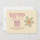 Esta ousada carta de RSVP de casamento abraça um tema dos anos 70. A parte frontal apresenta um rosa vintage com letras cor-de-rosa retrorreflectores, e a parte traseira tem um padrão retrorreflector vibrante emparelhado com flores. Este simples design é perfeito para casais que amam o encanto da vintagem com uma reviravolta moderna. Ideal para casamentos de verão, inspirados no retrorreflector, este cartão captura uma estética divertida e livre. Explore itens correspondentes na nossa suíte de casamento para completar a aparência!