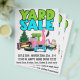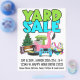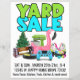 Bright blue and green retro yard sale flyer with Flamingo Pool float