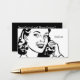 A retrógrada segurando um telefone para o ouvido "Me ligue" para a direita/ Trás é preta com texto personalizável branco