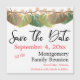Envie o anúncio "Salvar a data" para a data de reunião de sua família com um anúncio de ímã com uma borda de outono colorido Folhas de Aspen em uma corda sobre um fundo branco. Personalize o texto nos campos modelo ou clique em personalizar para selecionar um estilo de tipo, tamanho e cor preferidos.