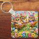 Leve um pouco da diversão da Páscoa para todos os lugares com este charmoso porta-chaves da série Rex e hoot, apresentando nossos adoráveis amigos corujas vestidos como coelhos cercados por ovos coloridos e flores