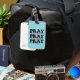 Reze design. Etiqueta de bagagem cristã para identificação rápida no pedido de bagagem.