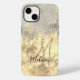 Capas de iphone de monograma de ouro prateado quico. Belo, moderno e legal cobrir para o modesto conhecedor de tendências e adepto da arte. Este na moda sofisticado design seria excelente para meninas que gostam de vestir designs cintilantes. Mostre o seu estilo pessoal, pareça elegante, moderno e sinta-se na moda com um design único em um acessório de dispositivo móvel ou personalize-o sobre outro produto de sua escolha. Adicione seu nome e monograma com uma tipografia caligráfica legal e moderna. Faz a ideia perfeita de presente para um doce aniversário de 16 anos, casamento, chá de panela, aniversários, chás de fraldas ou festas de solteira, dia de os namorados, Natal ou como presente em geral. NOTA: Estes são gráficos impressos - sem brilho real, joias ou peças levantadas
