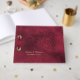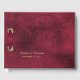 Um símbolo de convidado de casamento elegante em livro feito em uma bela e rica cor de vinho tinto com gráficos de um design de Fleur com aspecto gravado e fita de metal. Personalize o texto personalizado para atender às suas necessidades de casamento. Muito bom.