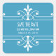 Simples e elegante Rico Ornamental Salve os adesivos de Data em azul e branco com uma sofisticada borda ornamental estilo Deco. Fácil de personalizar, basta adicionar os detalhes do casamento nos campos de texto fornecidos. Clique em "Personalizar" para encontrar mais opções de personalização.