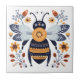 Uma bela abelha de mel, ao estilo do véu, em azul-marinho e ouro é a característica deste azulejo cerâmico colorido. A abelha está rodeada de designs de flores e folhas correspondentes.