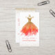 cartão de visita de alfaiate bonito feito em branco, com gráficos de um vestido formal de laranja cinza e ouro brilhante e sotaques de aspecto brilhante dourado. Personalize o texto para atender às necessidades de sua empresa. Um cartão de destaque encantador para qualquer alfaiate.