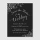 Este belo cartão magnético vai deixar seus amigos e família saberem salvar a data do seu próximo casamento. A beleza apresenta um fundo preto clássico, a caligrafia da escrita de cinzas leves, e ornamentados de folha fina prateada e espirais nos cantos. Uma maneira bonita de deixar seus amigos e família saberem sobre seu próximo casamento.