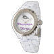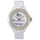 Este relógio é branco e borrado. Com um bonitinho dedo de rímel em impressão de brilho roxo