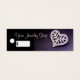 Belas etiquetas de preço para uma loja antiga ou joalheria vintage colecionável apresentam um alfinete cardíaco vintage rhinestone como a imagem e um design totalmente personalizável. Precisa de algumas etiquetas de preço para itens no seu compro ou para uma apresentação ou evento a ser apresentado? Estas elegantes etiquetas com joias antigas vão ajustado a conta! Totalmente personalizável com seu nome comercial, endereço de site e endereço de rua. O círculo preto indica onde você deve socar com um furo - socá-lo e deslizar uma fita ou corda pela extremidade para fixar as etiquetas à sua mercadoria. Escreva os preços à mão, onde indicado na frente da etiqueta, ou personalize as etiquetas com os preços que já estão aqui - a sua escolha. Deixe as etiquetas na mercadoria e seu cliente sai com um mini cartão de visita, direcionando-os para como encontrá-lo novamente!