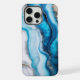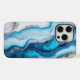 Ondas de azul vibrante e aqua fluem através da imagem, intercaladas com sotaques dourados brilhantes. As cores giram e se misturam, dando um sentido de movimento e elegância.