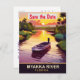 Convite de casamento save the date do rio Myakka, cartão postal de viagem. Barco de pesca no rio ao pôr do sol de verão lindo.