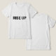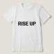 Hardcore motivational stencil typography with the phrase “RISE UP”. Minimal flat vector design, high contrast, centered chest layout, subtle distressed texture for edgy streetwear feel. Perfect for urban fashion and streetwear lovers.