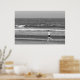 Imagem a preto e branco de um corredor na praia na província atlântica canadense de Nova Escócia, Canadá