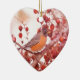 Fotografia de um Robin Americano sentado entre as amoras vermelhas num dia de inverno. Uma bela adição à sua árvore de Natal!