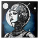 + IA ART + Mulher Cyborg Retro no Espaço Exterior + Azul e Branco +