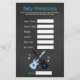 Essas super fofinhas guitarras de rock chá de fraldas Predição Cartões são uma atividade divertida de Chá de fraldas que se tornará eterno e fará uma adição de excelente à caixa de memória ou ao álbum de fotos do bebê. Passe os cartões de previsão durante o Chá de fraldas onde os convidados se divertirão enchendo-os e compartilhando suas previsões com outros! Mamãe pode anunciar o vencedor depois que o bebê for nascer. Veja o resto da nossa coleção de rochas e bebês para itens correspondentes.