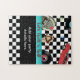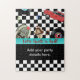 Convite para quebra-cabeça de 8" x 10" com uma imagem de colagem de ícones de 50 (jukebox, registros de 45 rpm, Lincoln Capri clássico, compro de malte) em um fundo de tabuleiro preto e branco. O texto "Lets Rock ‘n Roll" está em letras vermelhas no estilo do 50 em azul. Consulte cartão, envelope, postagem, etiqueta e adesivo correspondentes. Veja toda a coleção de convites para Quebra-cabeça do Nifty 50 nas ATIVIDADES | Seção Quebra-cabeça.