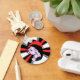 Corrente de Chave de Raparigas Roll Rock 'n Personalizadas, com uma garota legal com cores preta e vermelha.